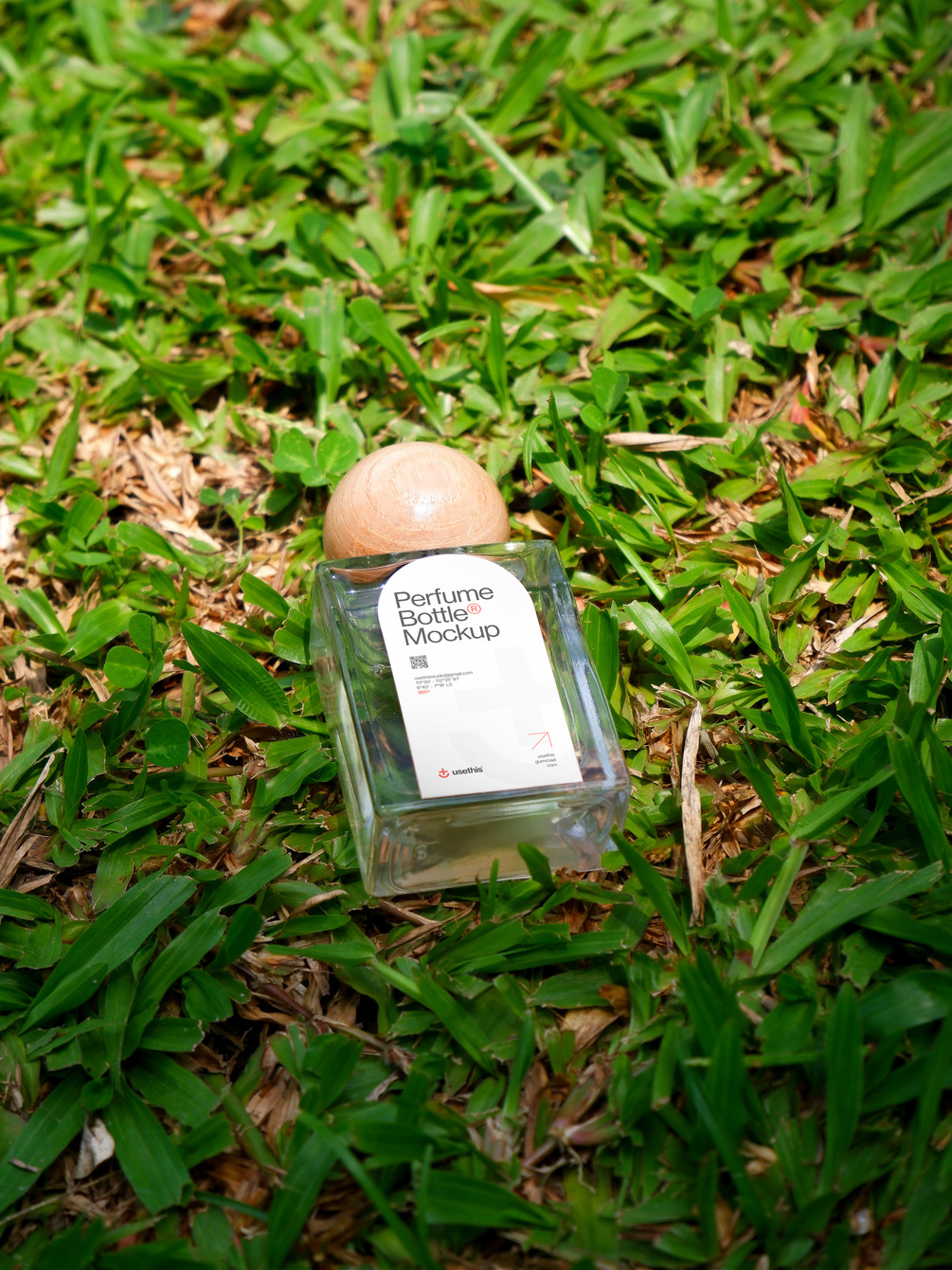 Showcase your fragrance design with this Outdoor Perfume Bottle Mockup. Featuring a premium glass bottle with wooden cap in natural outdoor scenes, this mockup is perfect for perfume packaging, cosmetic branding, and product presentation